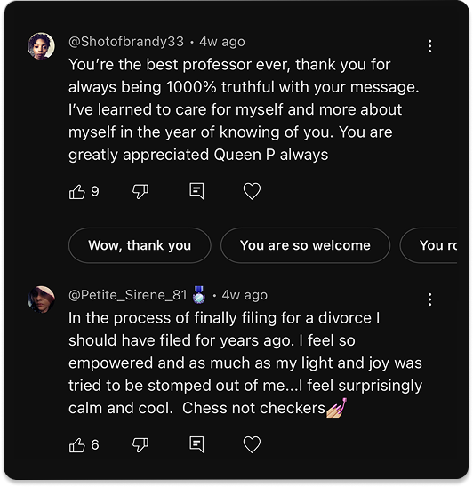 Known by many names, The Queen Maker and Professor P to name a few, and I have been on a journey of evolution, mastery and sovereignty for as long as I can remember.